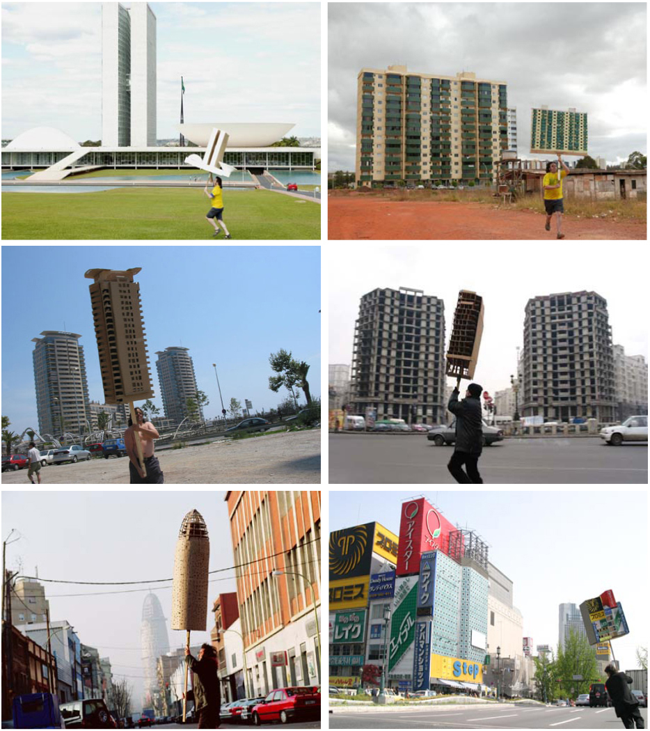 Des artistes jouent plus directement avec la foule de la ville et en font un acteur même de leur création. Le mode le plus discret peut être illustré par Jiri Kovanda, l’artiste tchèque que nous avons déjà croisé au chapitre précédent et qui, dans les années 1970, intervenait dans les rues pour y introduire des changements minuscules, quasiment pas repérables, car tellement proches de la vie réelle : par exemple, marcher dans la rue en frôlant des passants ou dans un escalier mécanique, se retourner soudain et regarder dans les yeux la personne qui est derrière lui. Ces interventions dérisoires, qui ne prennent sens qu’en fonction de la réaction des passants, transforment l’espace public en une sorte d’univers mental dématérialisé, où chacun peut loger ses pensées.