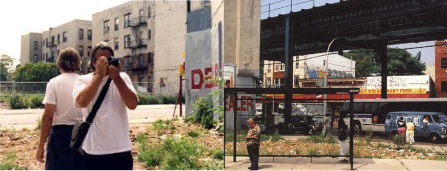 Autres artistes arpenteurs, animés par le même esprit, Laurent Malone et Dennis Adams ont entrepris le 5 août 1997 une marche à New York, entre le centre de Manhattan et l’aéroport international John F. Kennedy. Ils marchaient côte à côte et, quand l’un décidait de prendre une photo, l’autre photographiait la direction diamétralement opposée. Leur trajet a duré onze heures et demie et ils ont rapporté 243 paires de photos, dont on peut aisément imaginer que l’intérêt esthétique est variable. Car, bien entendu, l’ambition de l’entreprise est ailleurs : l’objet, c’est d’échapper aux parcours balisés par la cartographie officielle pour privilégier, avec d’infinies difficultés, la ligne droite, le chemin rectiligne, et d’acquérir par ce biais une vision nouvelle et personnelle du tissu urbain. La photo, dans cette entreprise, ne compose pas un tableau, elle est seulement un prolongement du regard qui offre une trace matérielle du puzzle que l’esprit du marcheur recompose. Vito Acconci avait ouvert la voie en réalisant Blinks en 1969 : il marchait tout droit, les yeux grands ouverts, et, chaque fois que l’œil clignait néanmoins, il prenait une photo.