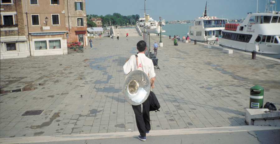 Francis Alÿs en a donné une illustration pleine d’humour lors de la Biennale de Venise de 1999 en réalisant une œuvre qu’il a intitulée Duett : l’artiste et Honoré d’O sont arrivés séparément dans la ville, chacun portant la moitié d’un tuba hélicoïdal – cet instrument de musique tellement énorme qu’il semble une caricature. Ils ont parcouru les rues de Venise jusqu’au moment où ils se sont croisés, deux jours plus tard ; ils ont alors reconstitué l’instrument, produit un seul son et se sont quittés (9). Pour l’artiste, le hasard de la rencontre n’était pas l’objet de la marche, il en marquait seulement l’achèvement, ce qui importait vraiment, c’était la déambulation elle-même. Arpenter est une fin en soi.